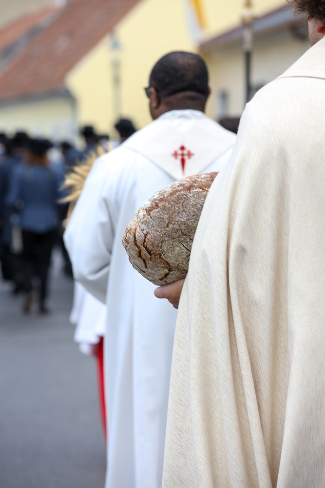 Die Kirchen werden mit Getreide, Früchten, Blumen, Brot und auch Gemüse geschmückt. Die Menschen bringen Speisen mit in die Sonntagsmesse, die während oder nach der Messe gesegnet werden. In manchen Pfarren werden die gesegneten Speisen danach an Arme weitergegeben.