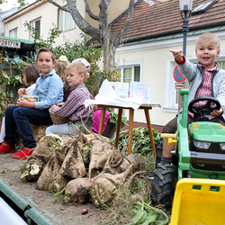 Im Herbst werden viele Kirchen mit Getreide, Früchten, Blumen, Brot und auch Gemüse geschmückt.